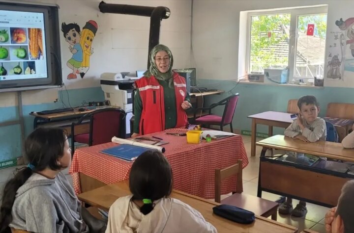 Samsun'un Salıpazarı ilçesinde, Cevizli ve Yavaşbey İlkokullarında öğrenciler, kahverengi kokarca ve anız yakmanın ziyanları...